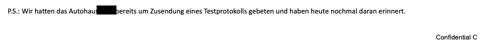 Angefügt habe ich auch die von mir beglichene Rechnung der XXX, die als Ergebnis eine Auslesung des Wertes unter 75% hatte. Bitte erstatten Sie mir aufgrund von IX 5. den Betrag auf mein Konto mit der IBAN xxx innerhalb der nächsten 3 Wochen.Der ZE-Stützpunkthändler ist jetzt derjenige, der liefern muss. Im Besten Fall deckt der dabei auf, wer die Diagnose-Bedingungen definiert hat. Und mit