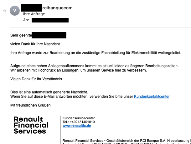Für mich ist der Drops mit der Akkumiete jetzt gelutscht. Ohne Probefahrt beim ZE-zertifizierten Renault-Partner gibt es keinen Akkutausch ( Quelle ). Da hinzugehen, um sich einen fraglichen - also ein Akku, dessen SOH im OVMS < 75% gesunken ist - Akku tauschen zu lassen, ist reine Geldverschwendung (newbies Meinung @ 29.05.2022). Dafür ist der Akku-Rauskauf finanziell zu attraktiv und die Kisten halten ja tatsächlich mindestens 10 Jahre - Chapeau!