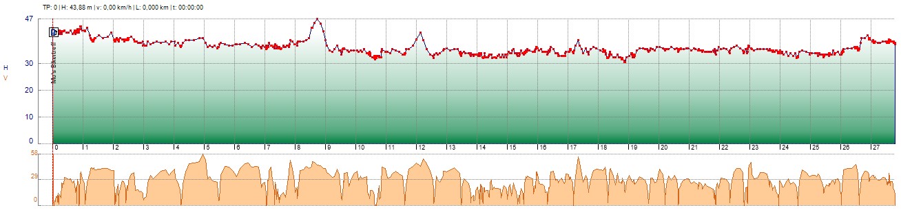 Als Beispiel die Rundfahrt Freitag-Abend: 28km gefahren, 32% Akku verbraucht => 88km theoretische Reichweite!