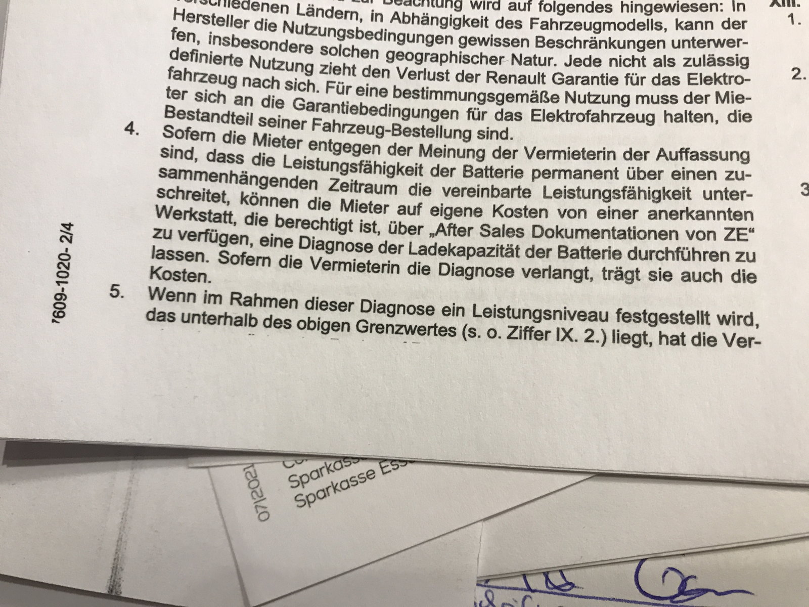 So .. jetzt habe ich mal den Vertrag gelesen - und ich hoffe, dass die Kostenübernahme für Auslesungen unter dem garantierten Wert in Ziffer IX 5. steht- sonst wird mein Schreiben peinlich. Der Ausdruck des kompletten Mietvertrages scheiterte am Druckergreifrand bei der Renault-Banque. However - morgen geht das Einschreiben los!