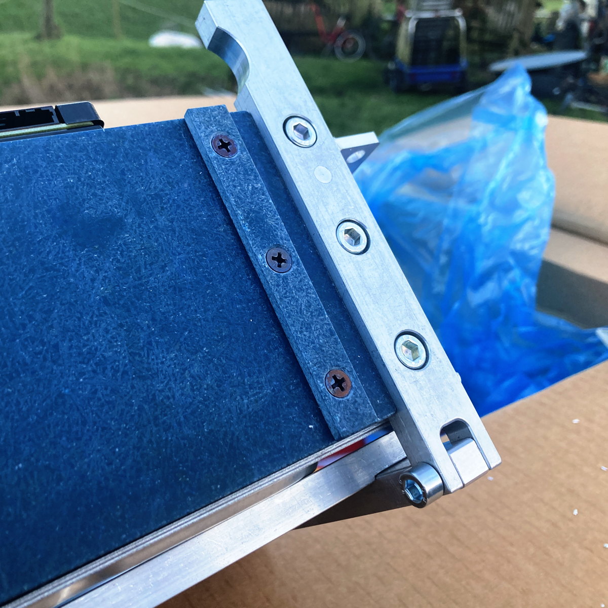 Diese Alu-Leisten werden in die vorhandenen Bohrungen im bestehenden Akku-Gehäuse-Boden mit den vorhandenen Schrauben geschraubt