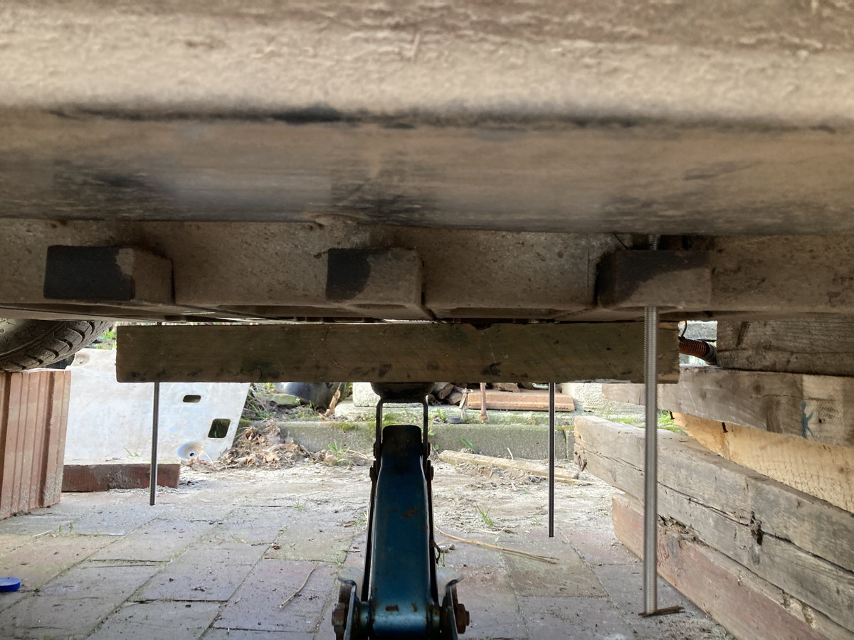 Um den Pfälzer68 ruhig schlafen zu lassen, habe ich noch ein paar Paletten und Kanthölzer unterfüttert.