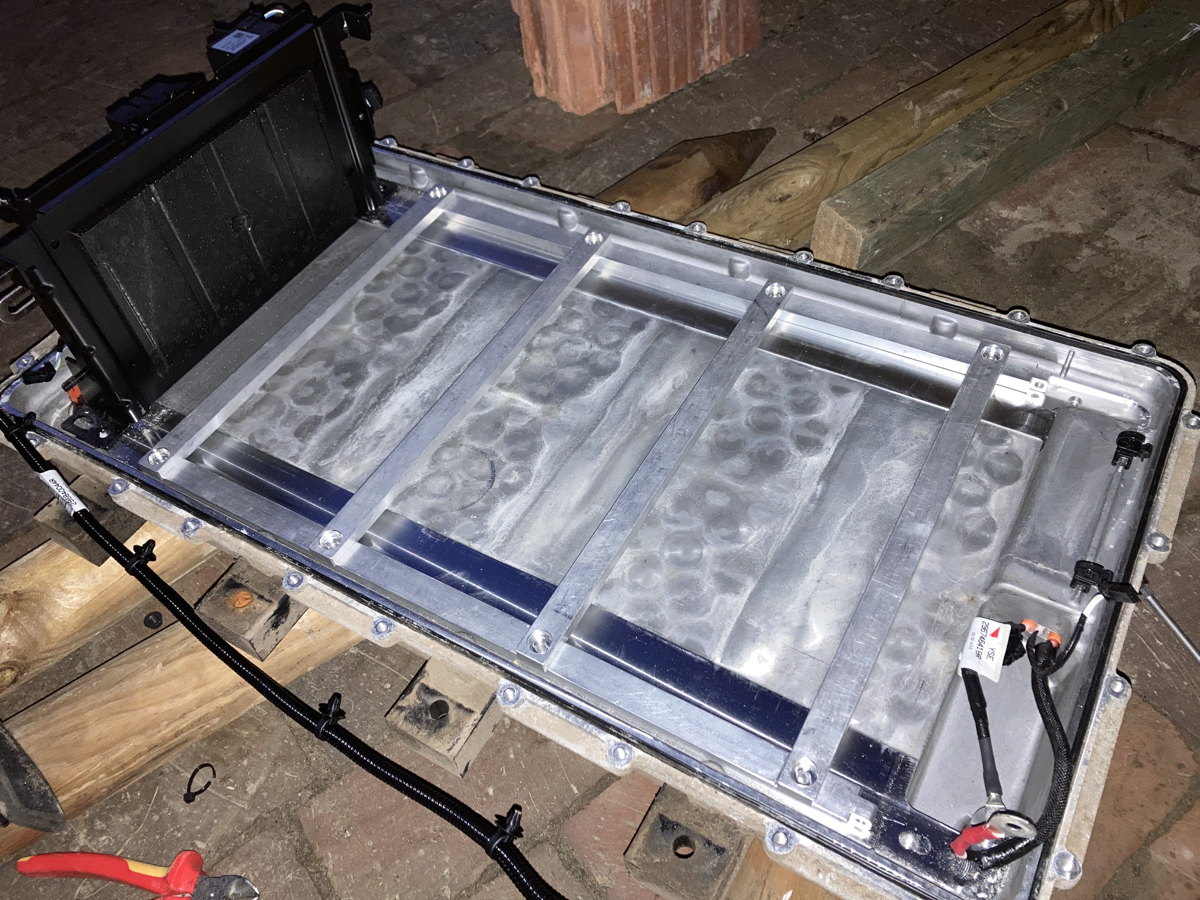 Den Akku habe ich von Gewindestangen geleitet abgelassen - so in 5-7 cm Schritten - das hat etwa eine halbe Stunde gedauert. Die Schrauben auf den äußeren Postionen rausgenommen - Gewindestangen (30 - 35 cm lang) eingedreht und Halte-Muttern mit Unterlegscheibe 2 cm unter Anschlag. Dann die inneren Schrauben gelöst und den Akku abgesenkt - mit dem Wagenheber angehoben und die Mutter ca 5cm tiefer positioniert - das ein paar Durchgänge lang. Ich denke, dass ich den Akku auch so ganz sicher wieder eingefädelt bekomme.