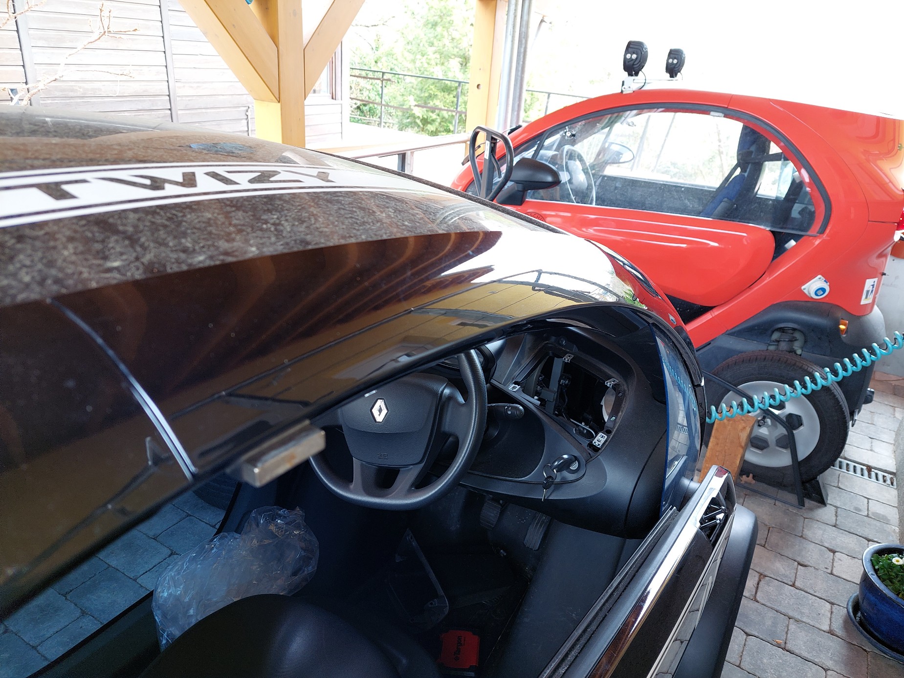 Twizy 1: 08.2012 „the orange edition“, aktuell 16.550km, Kaufbatterie (Sitze neu gepolstert, OVMS, Kotflügel lackiert, Zusatzlager)