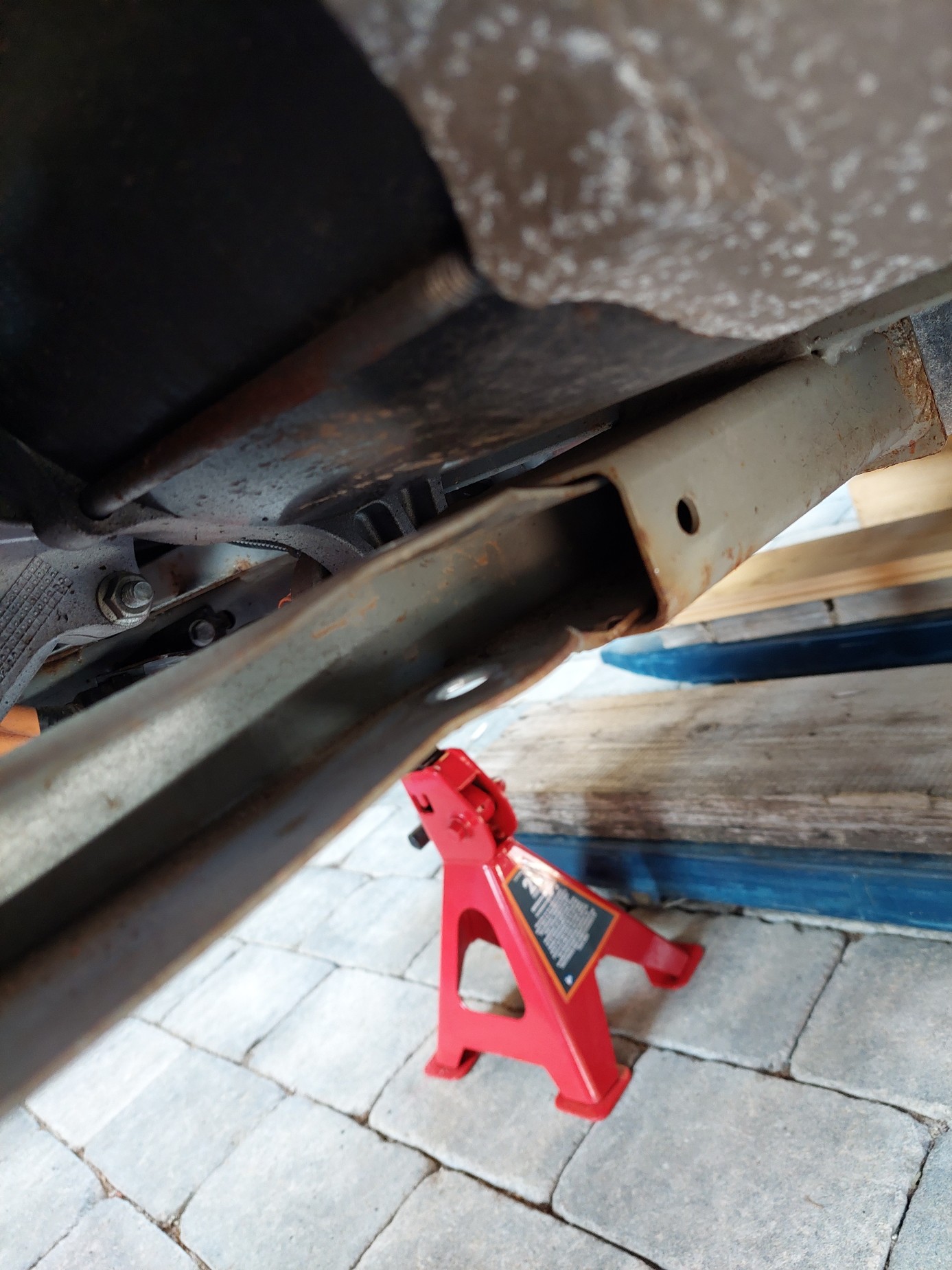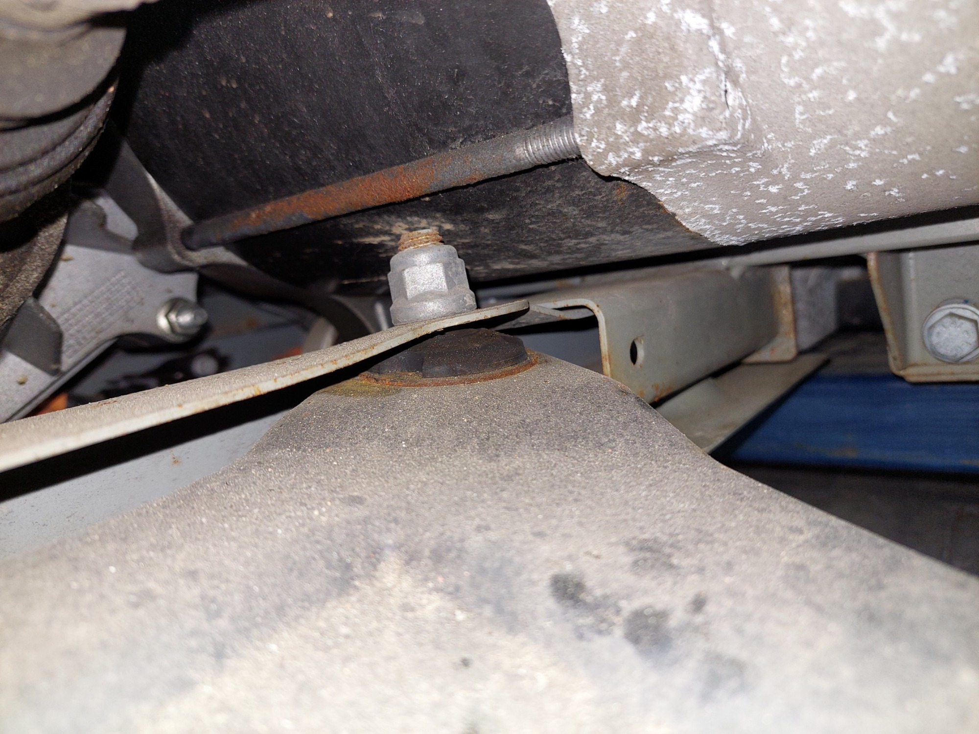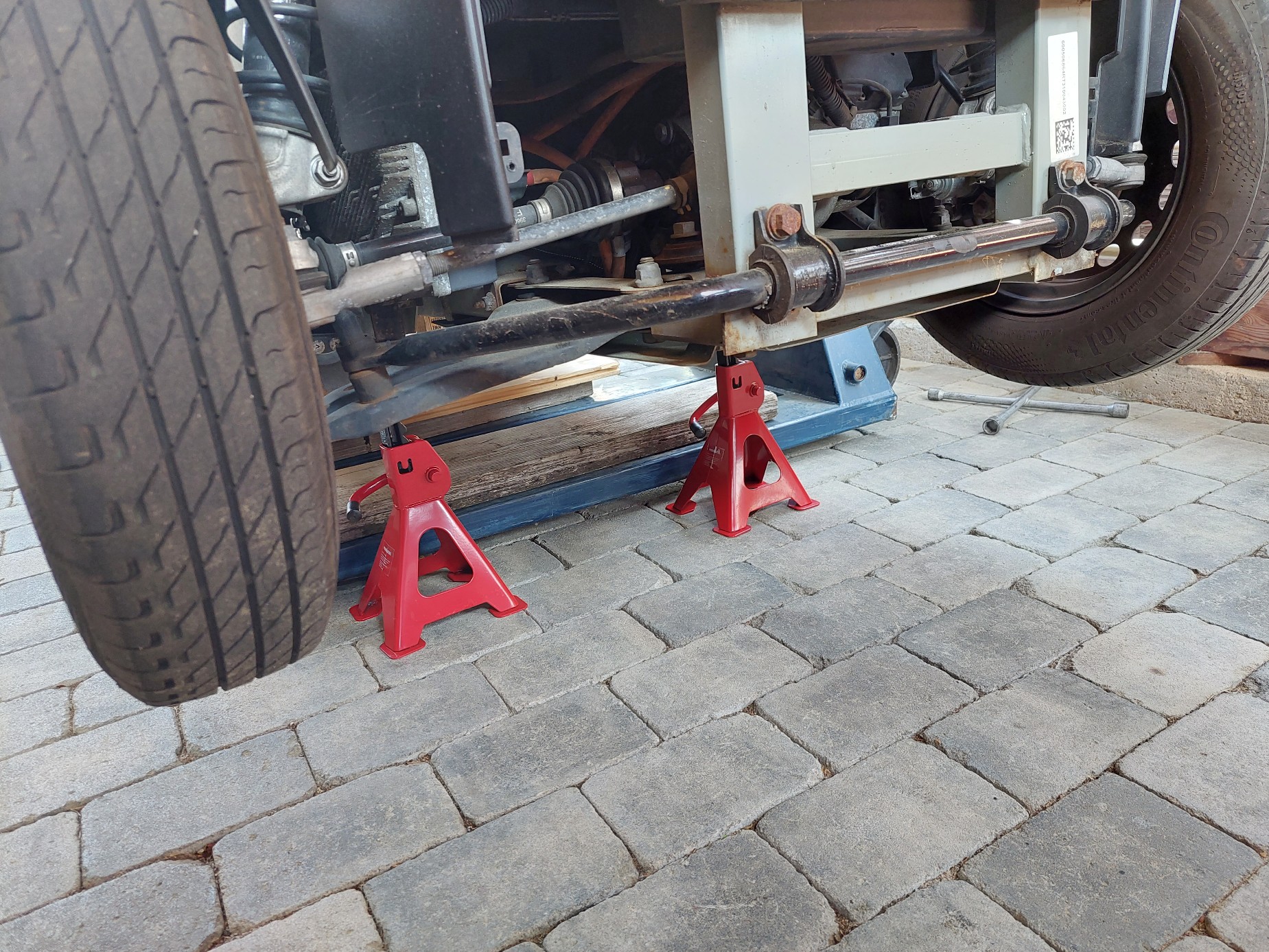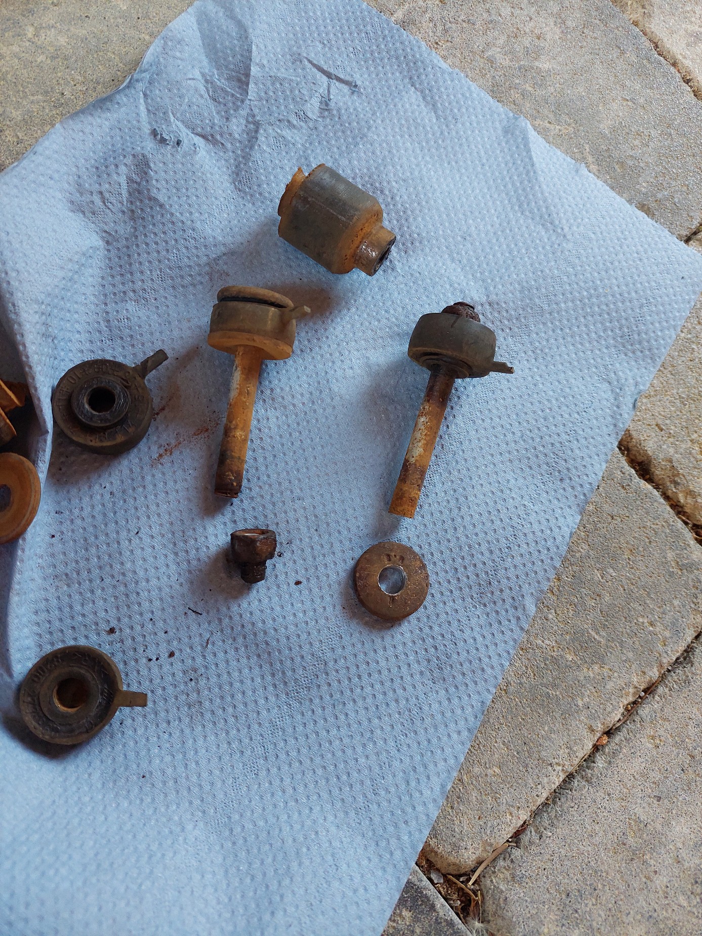 Hilfsrahmenausbau ist eigentlich nix besonderes, wenn nicht irgendeiner der Vorbesitzer auf die Idee mit dem 3D-Druck für die Stabigummies gekommen wäre. Unter den Kappen alles festgegammelt.. also Abscheren und Ausbohren.