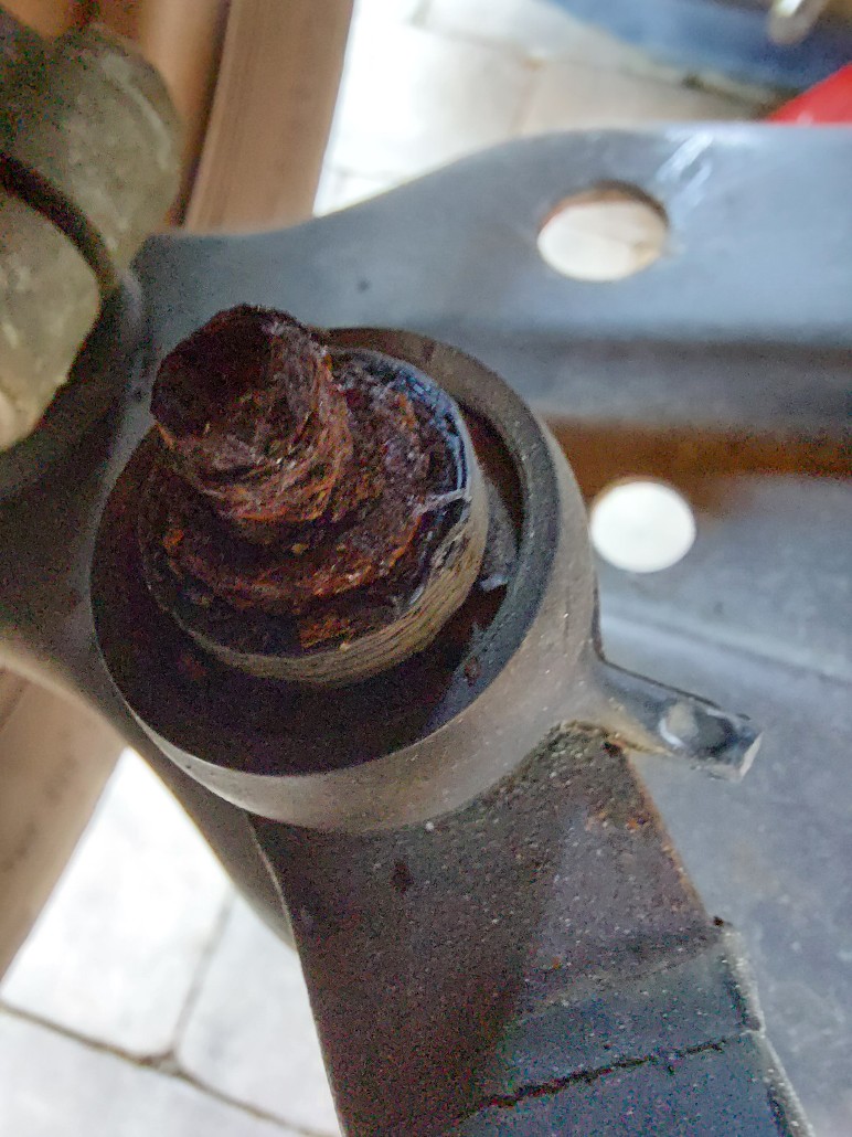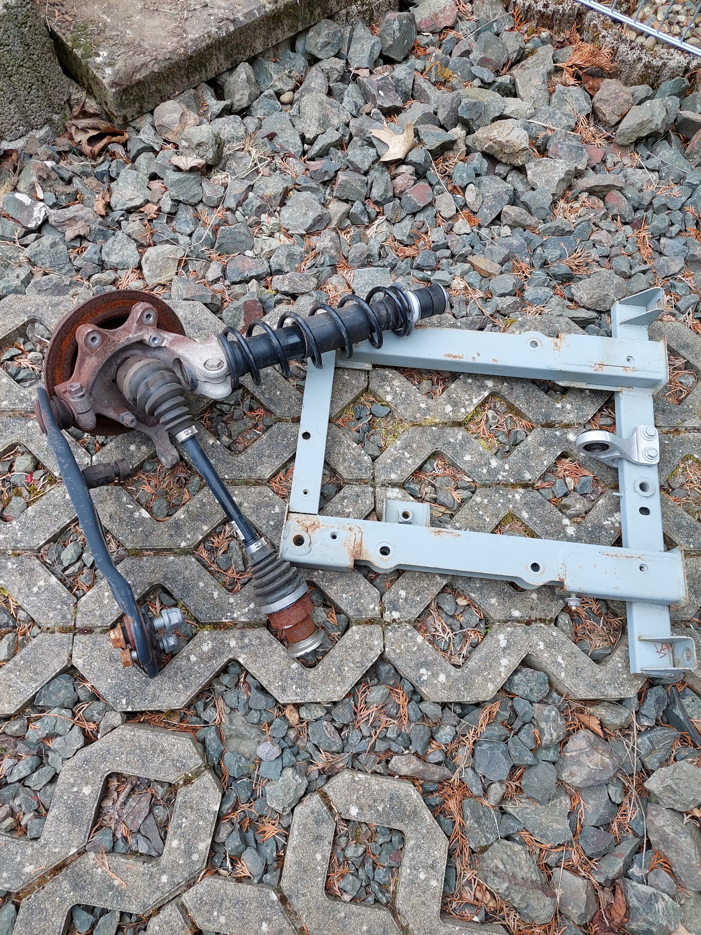 Die rechte hintere Antriebsseite musst ich allerdings komplett tauschen, der Achsschenkel bzw. die Kegelaufnahme des Spurstangenkopfes hat auch was abbekommen. Auf jeden Fall eigentlich ein wirtschaftlicher Totalschaden, imho auch schon ohne die Arbeit.