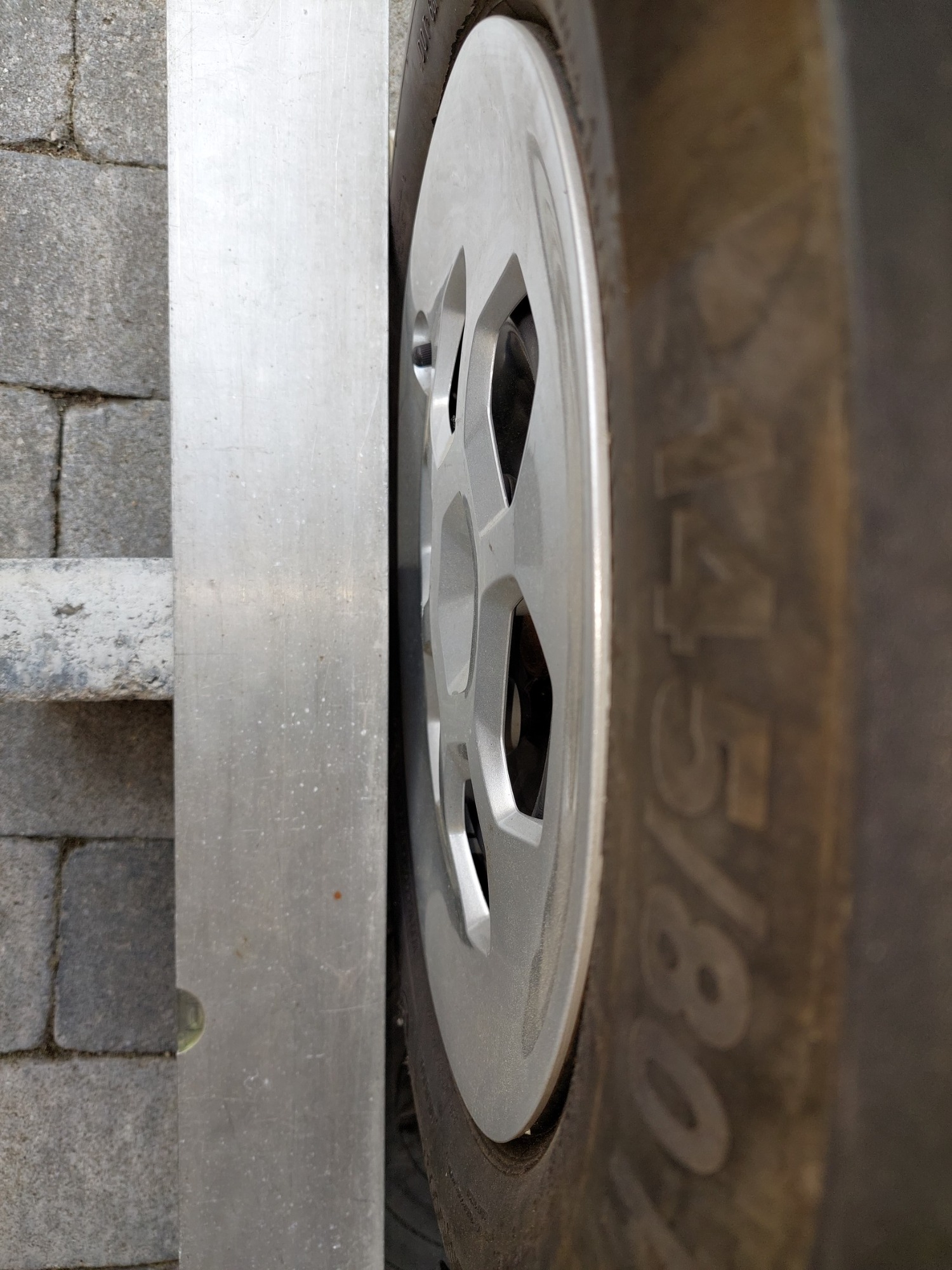 Hinten rechts 8mm zu weit innen... trotz neuer "Gebrauchtteile".. entweder hats die Spurstangenhalterung am Heckrahmen verbogen, oder die Kiste ist sonstwo noch krumm..