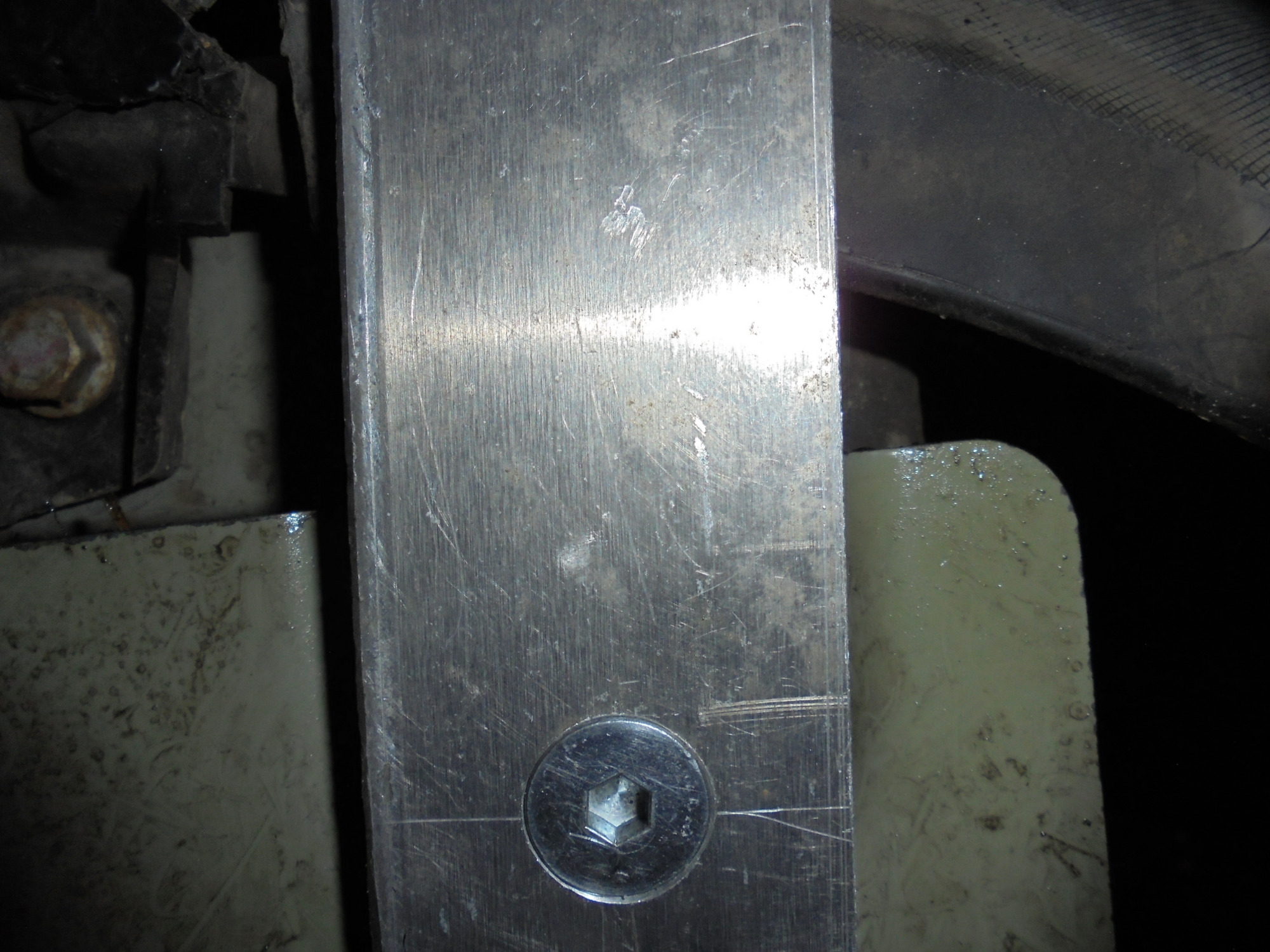 der Träger ist etwas schief da die linke Befestigungsschrauben 10mm aus der Mittel sitzt. Die roten kappen sind Schonhammer Köpfe.
