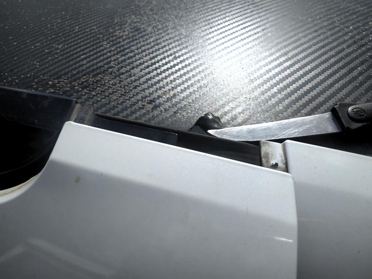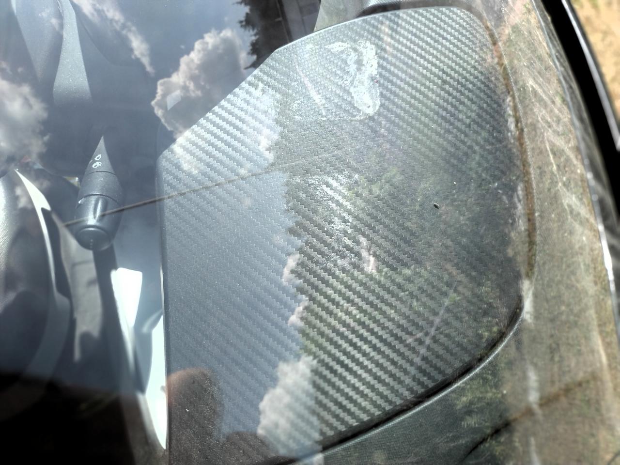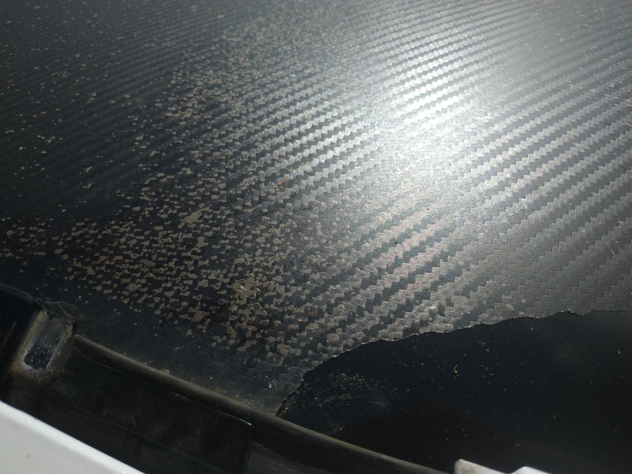 Auf der Folie lösten sich die (ist das echt Carbon?) Fasern der Folie ab, sodass ein brauner Streifen quer über das Dach über der Querstrebe hinweglief.