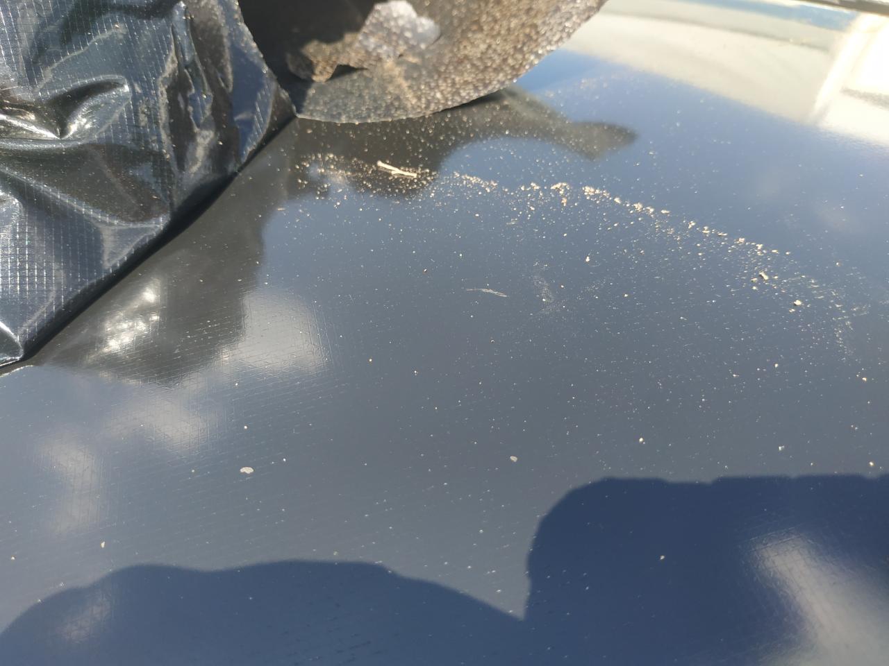 Zügig abgezogen, glänzendes Dach. Reste der Dachbeschichtung als Staub zu sehen.