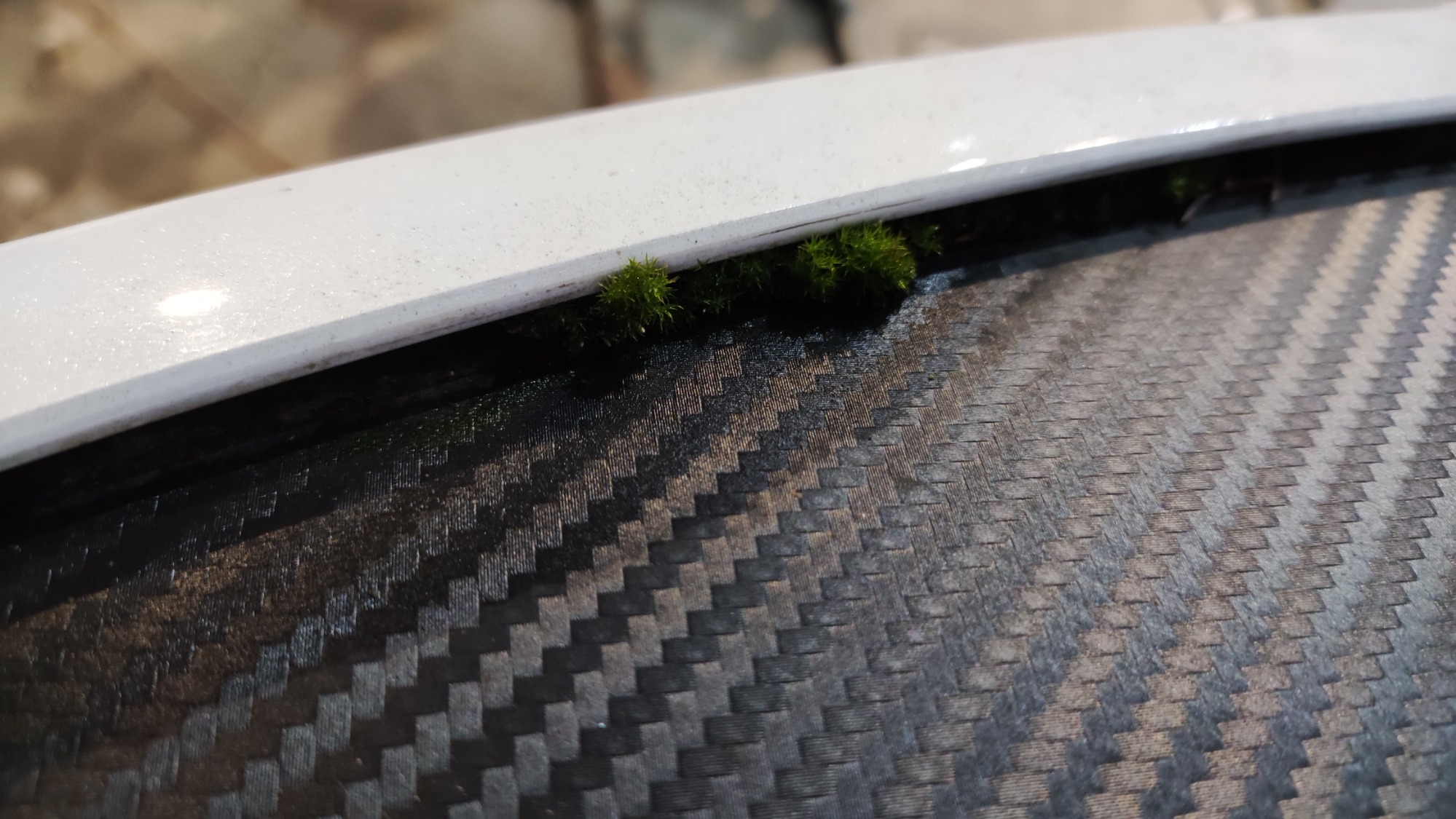 Komischerweise steht die biologische Besiedelung bei diesem Exemplar in krassem Gegensatz zur Ausbreitung der braunen Pest. Die hält sich bei diesem Exemplar trotz 2012 Baujahr in überraschend unauffälliger Menge?