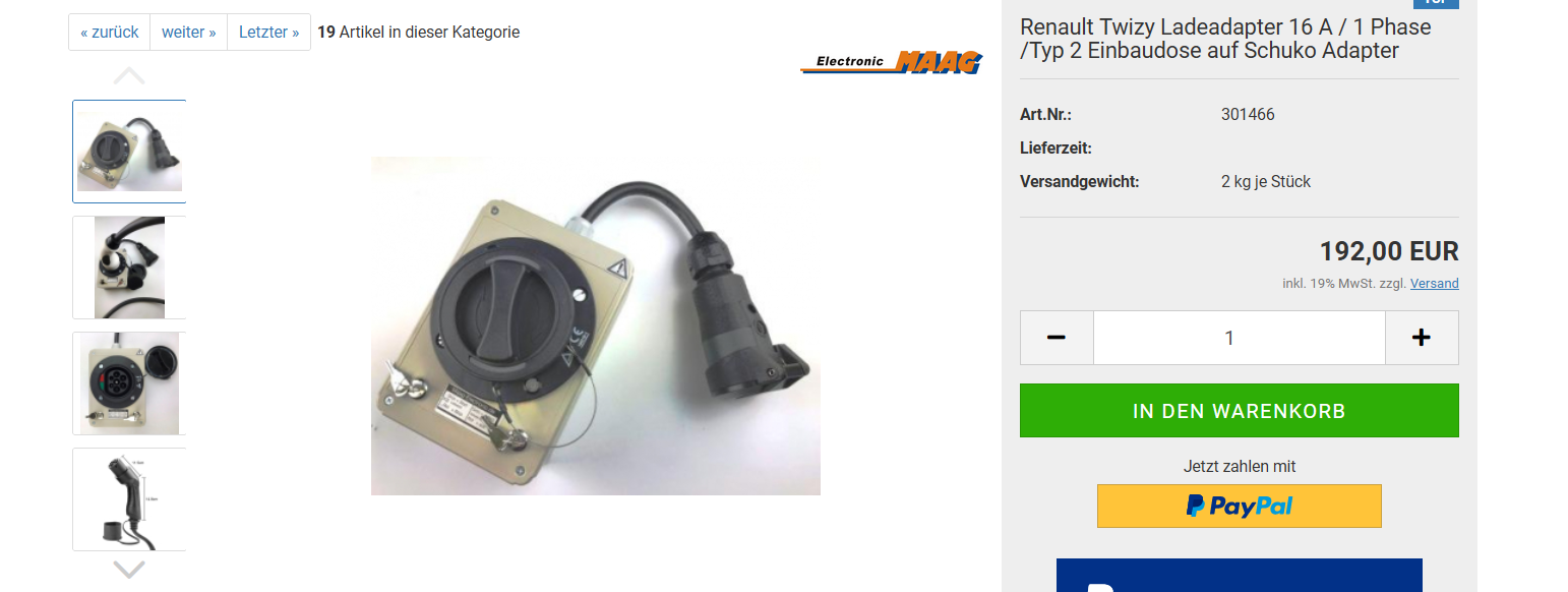 www.megashop365.de/renault-twizy-ladeada...typ-2-einbaudose-auf-schuko-adapter.html