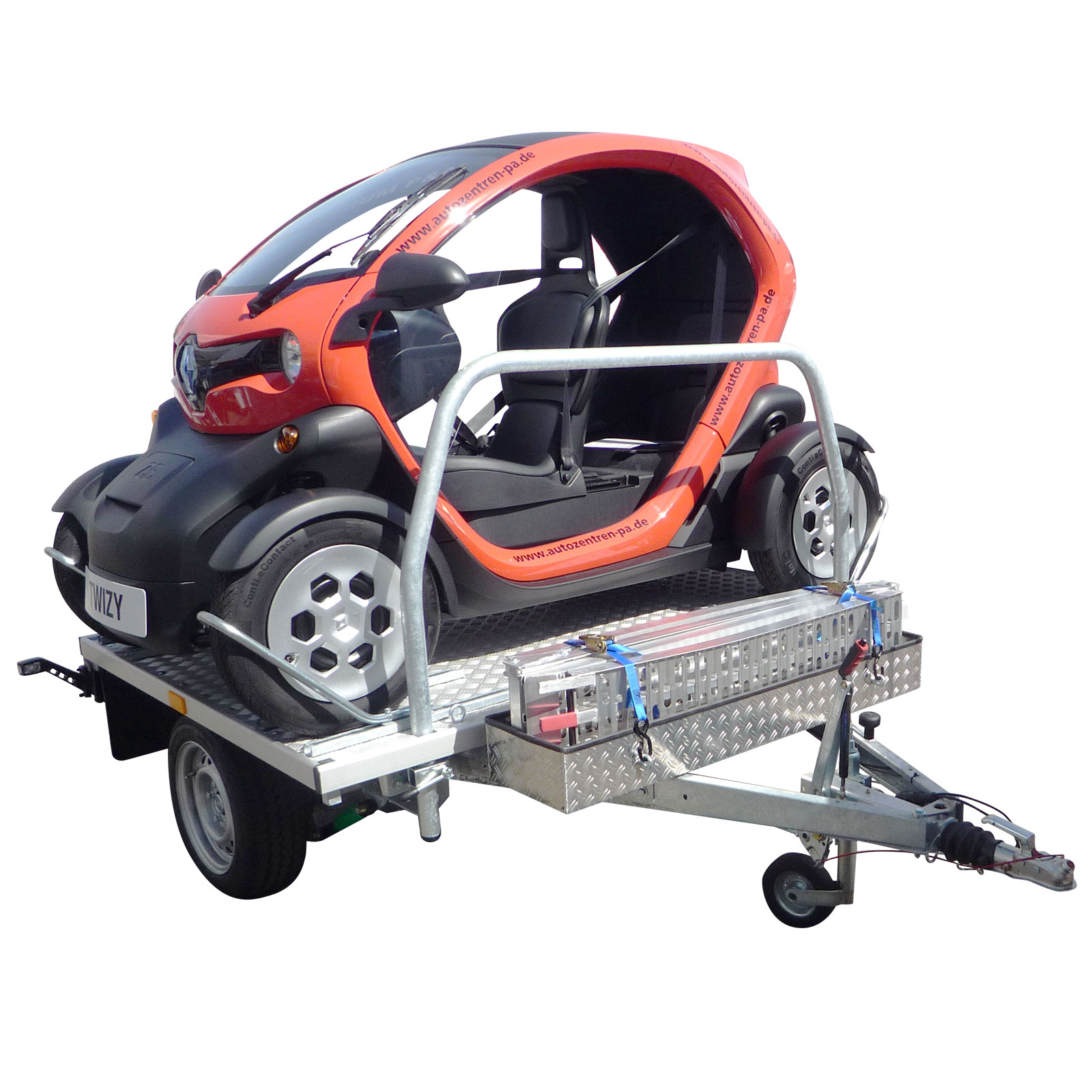 Da der Hänger leer aber schon mindestens 280 kg wiegt, bleibt einem mit dem Twizy ohnehin nichts anderes übrig, zumal sich somit noch ausreichend Reserven ergeben.