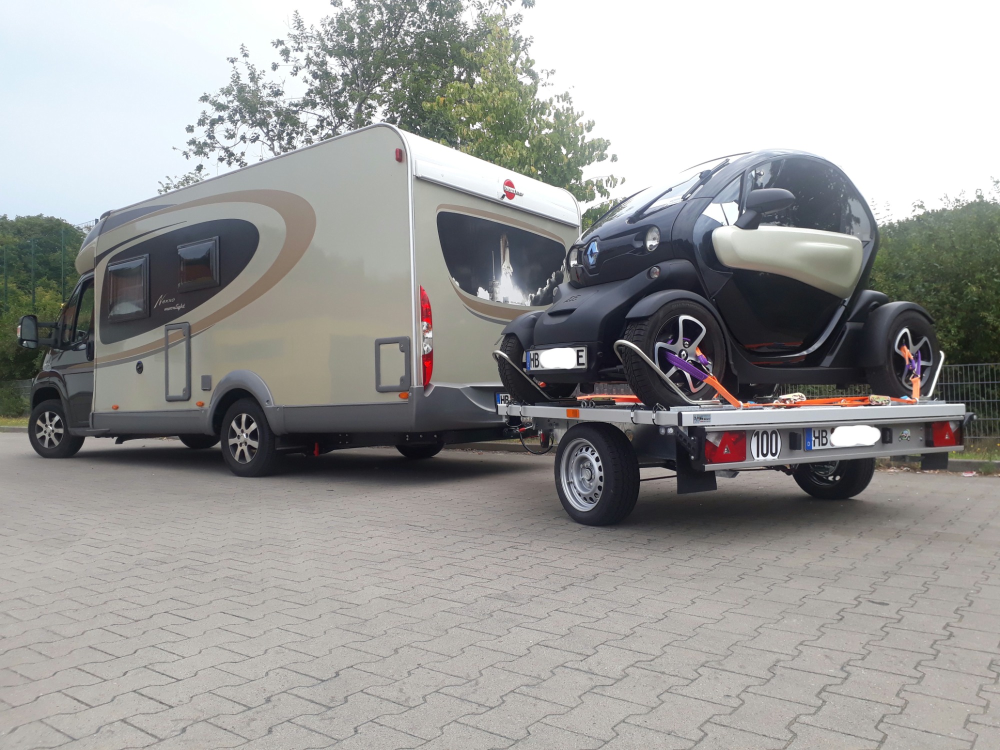 Ich hatte die 950 kg - Variante bestellt. Ungebremst mit ´nem 500 kg Twizy am Haken wollte ich mir mit meinem alten, ABS-losen Wohnmobil dann doch nicht antun...