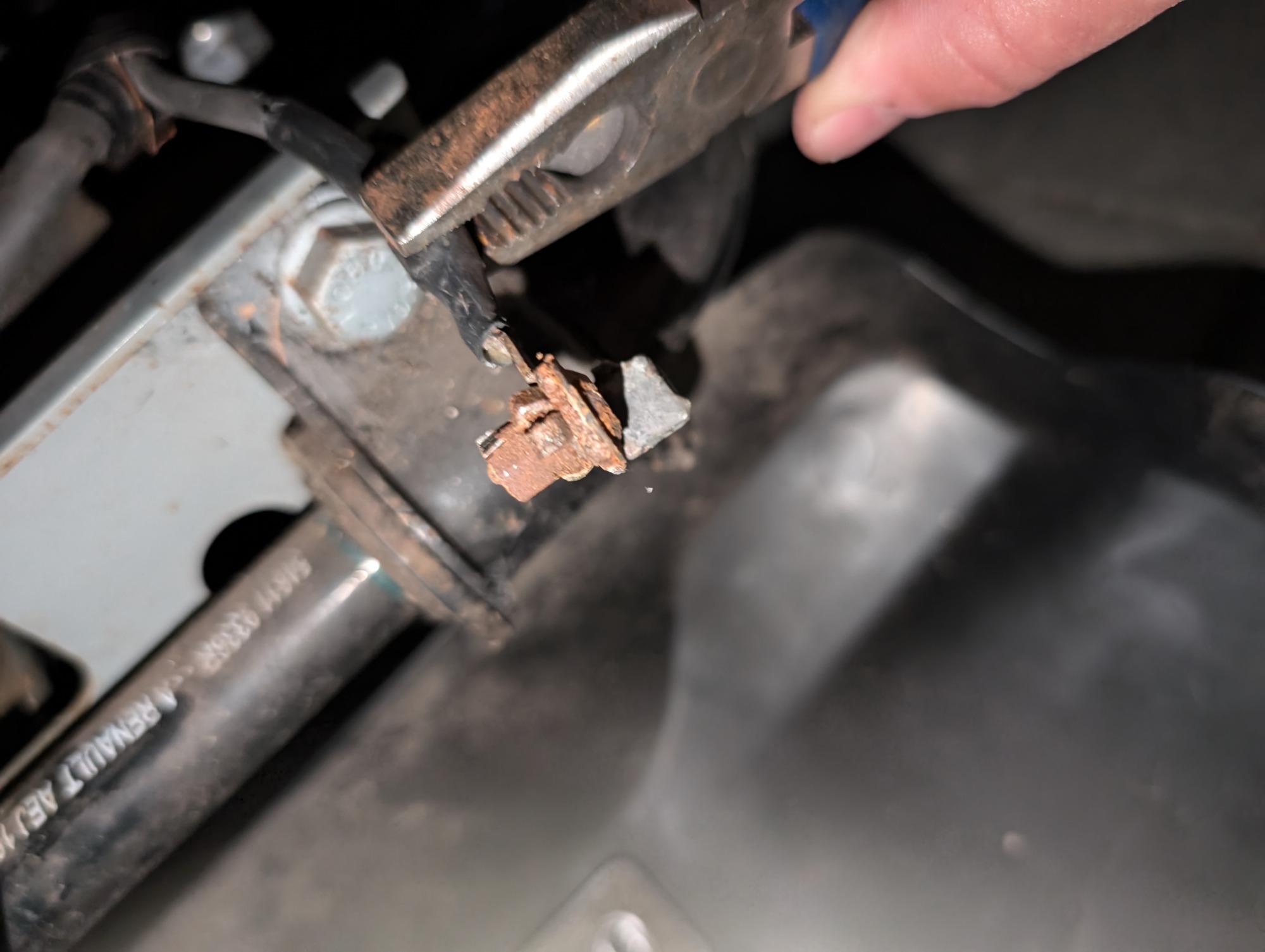 Mein minus Pol Kabel an der 12v Batterie ist einigermaßen kurz nachdem ich einen neuen Kabelschuh montieren musste. Der originale ist so durch gegammelt das ich ihn abkneifen musste.