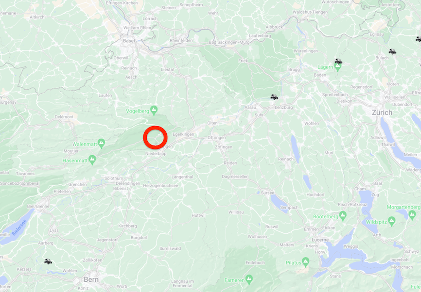 Und hier ist es, eingekreist... die Schweiz ist zwar klein, aber dort sind nicht viele Ts eingetragen. Leider ein bisschen weit für mich.In der Nähe von Balsthal, Kanton Solothurn