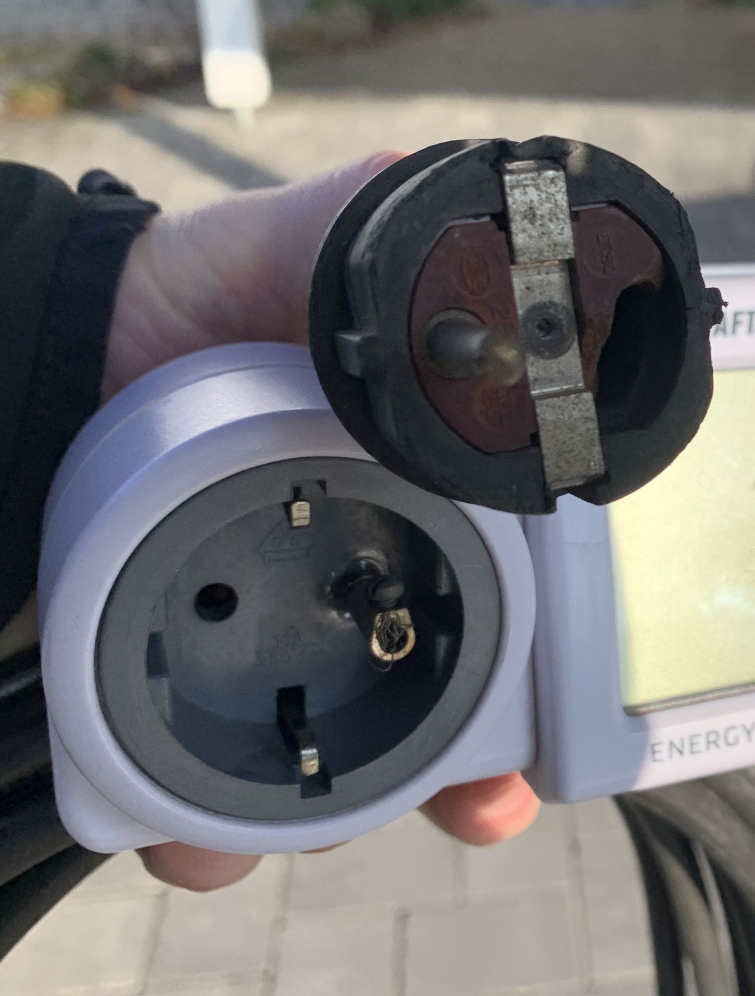 Habe den Stecker dann zerlegt und die Drähte hat es innen drin angekokelt, selbst der PE ist weg, ggf war der das aber auch vorher schon.