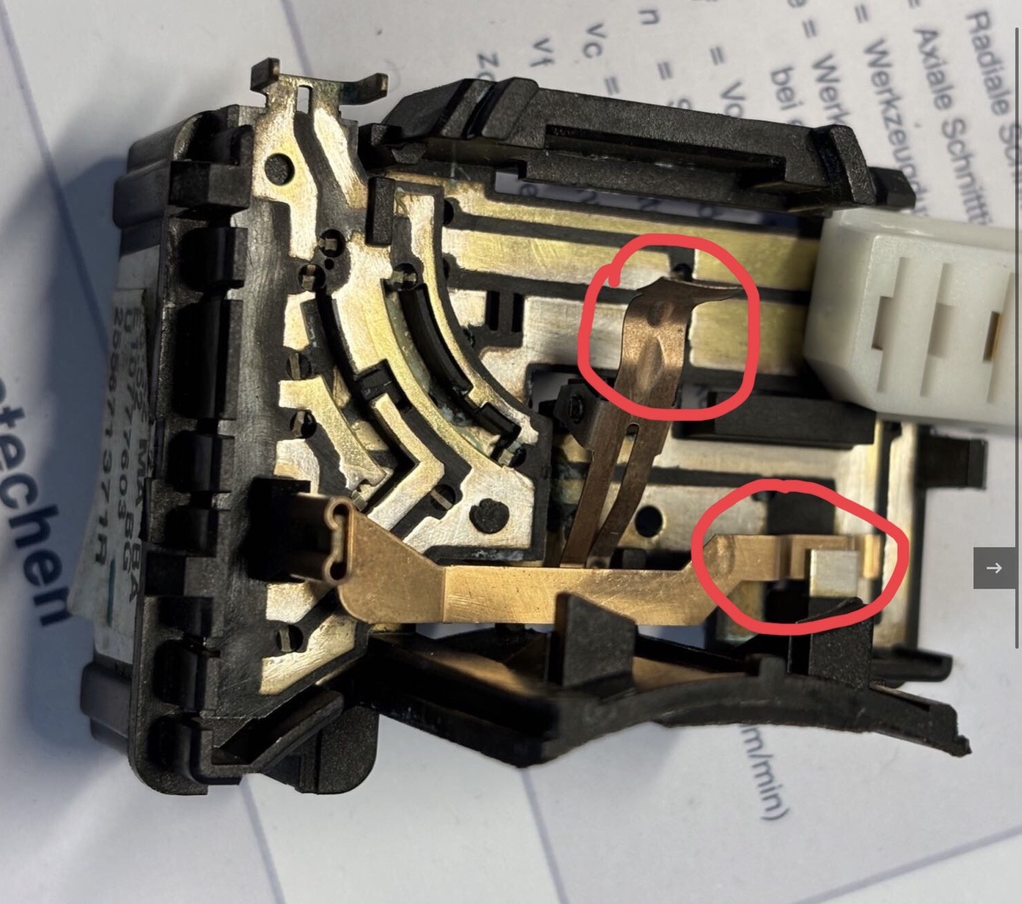 Ist schon länger her ….. Hier habe ich die Kontaktfahnen markiert. Einer von den beiden schaltet das Tachosignal.