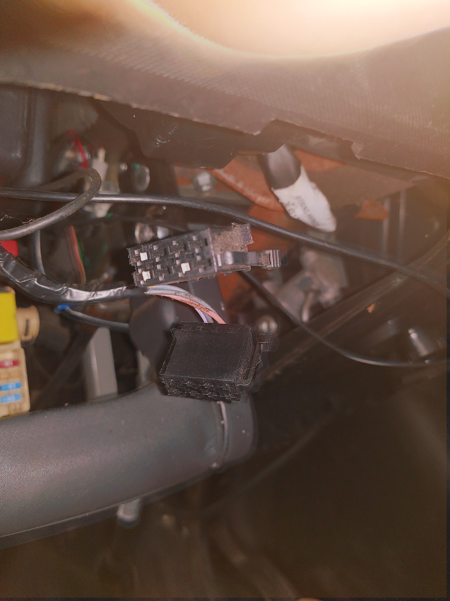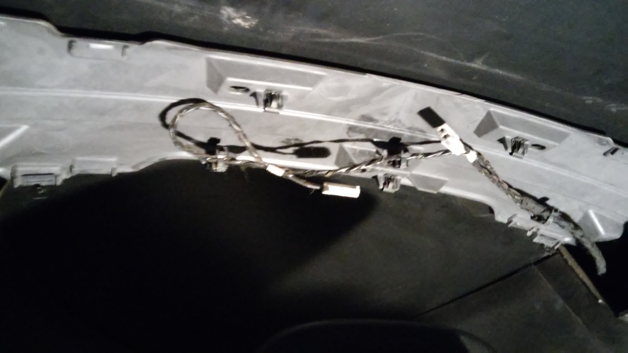Die Lautsprecherkabel aus dem Dach enden unten links