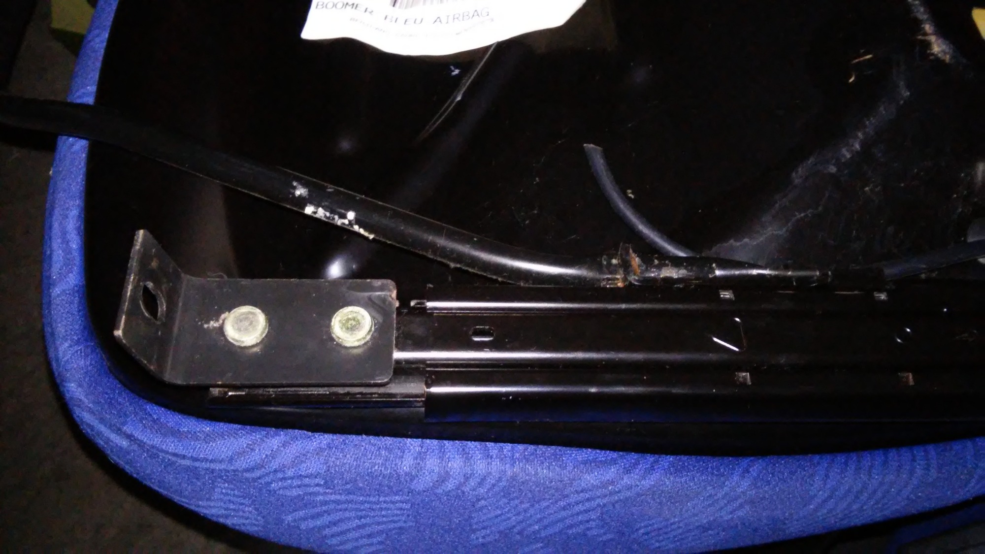 Dann der Einbau: nach langer Schlafzeit fiel mir ein: Unterseiteecken des Smartsitzes mit Hammer beherzt platt dengeln, damit's nicht klemmt beim Vor-/Zurückschieben: kein Effekt: es bleibt bei ca. 8cm Schiebeweg.