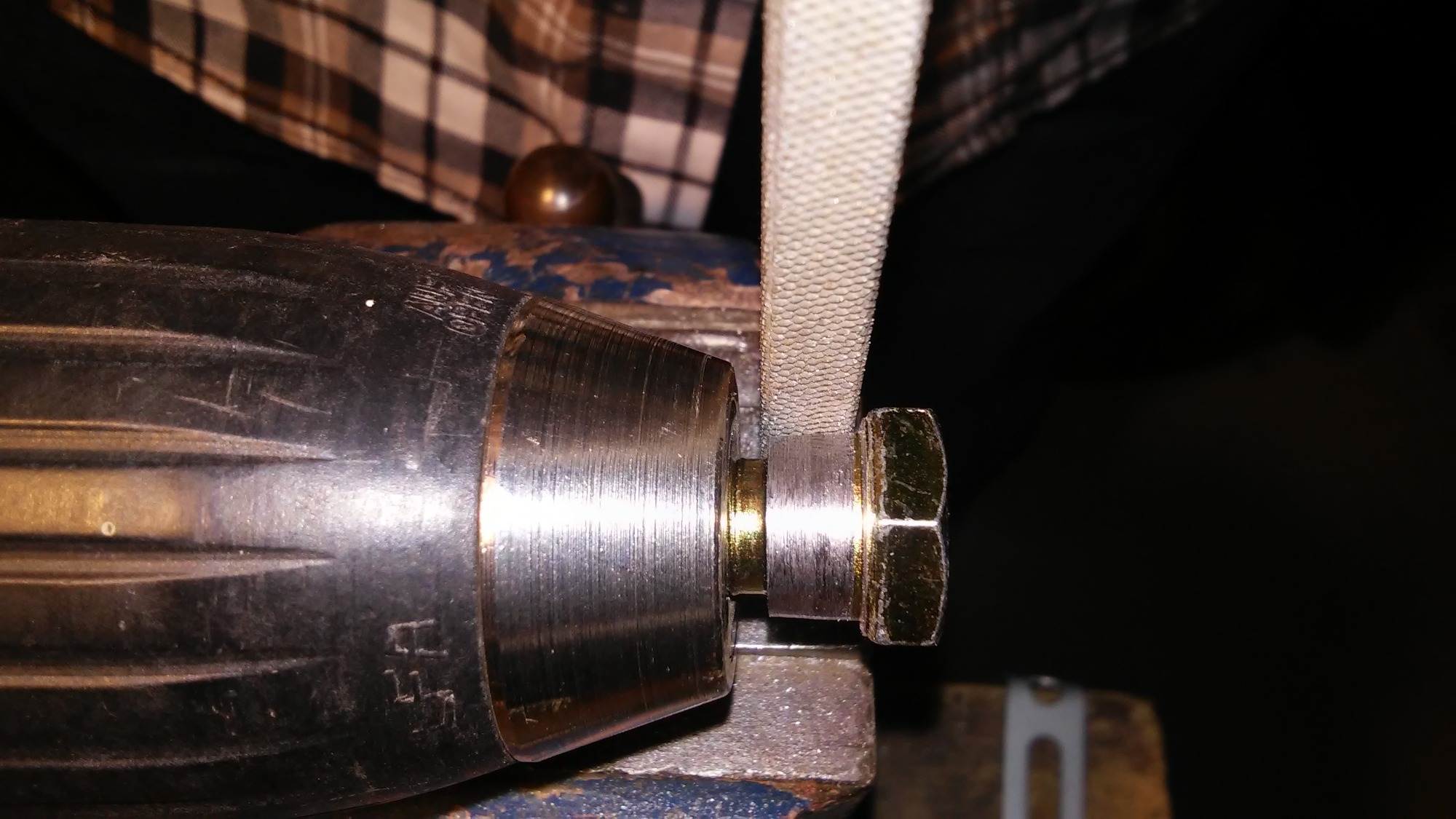Gurtschraube eingepannt und abgeraspelt