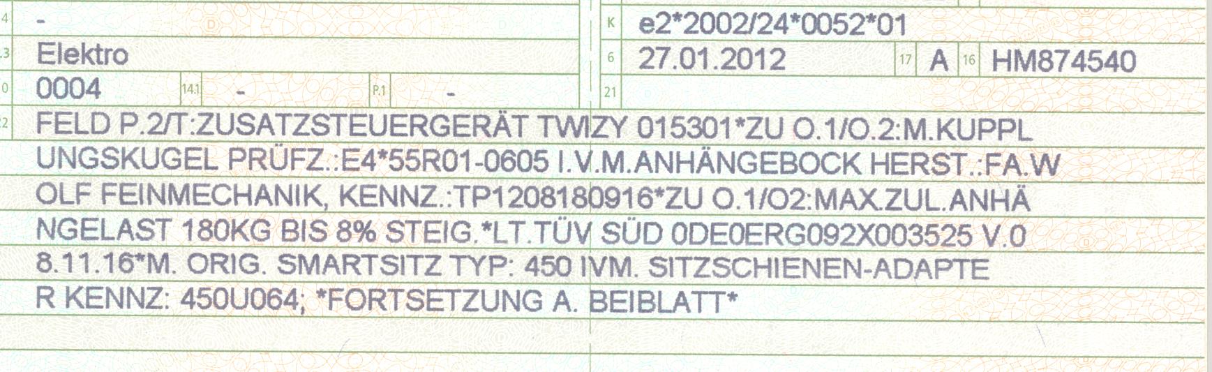 Bei meinem Anhänger war auch ein Schreibfehler drinne (Twyzi statt Twizy). Problemlos auf der Zulassungsstelle beim Eintragen verändert.