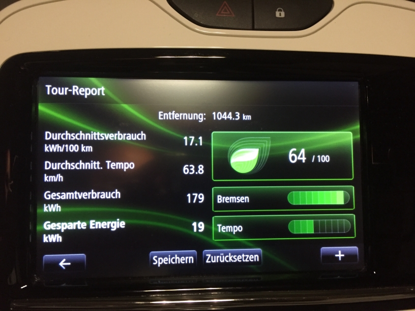 Z.B. letzte Woche Niederlande mit 3 Erwachsenen + Kind, waren etwas über 1000km unter dem Strich, und sieht dann so aus: