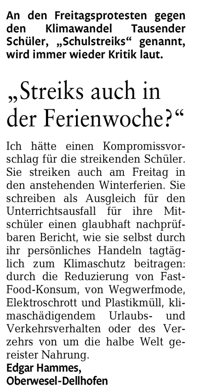 Dazu fällt mir folgender Leserbrief ein, denn ich so direkt unterschreiben würde!