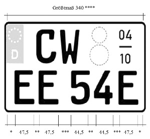 Aber die Verordnung dazu ist auch etwas unklar. Grafisch steht "20-30mm" Abstand. Im Text steht "das E folgt ohne Leerzeichen".