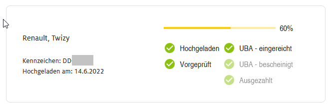 ich habe bei elektrovorteil.de meinen Fahrzeugschein am 13.03.2022 eingereicht, die Auszahlung i.H.v. 351€ ist am 24.06.2022 auf meinem Konto eingegangen.