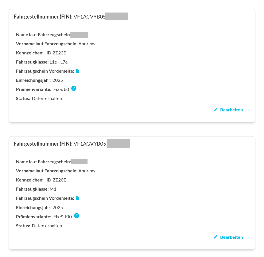 Das bestätigt lediglich, dass Instadrive deine beide Fahrzeugscheine erhalten hat.