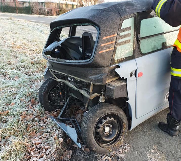 Vorweg, mir gehts hier nicht um reisserische Bilder mit totaler Zerstörung, sondern um einen Einblick in die mehr oder weniger gute Unfallprävention die diverse L6/L7e Typen bieten. Die nicht notwendigen Crashtests machen diese Typen ja gerade so beliebt bei preisgünstigen Modellen.