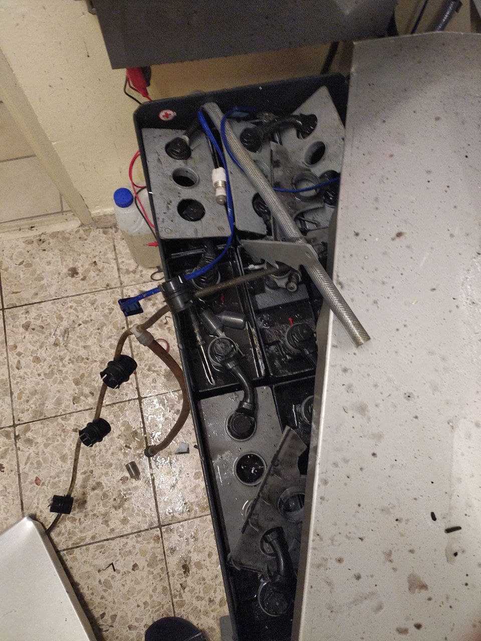 Dieses riesen Trumm von Staplerbatterie hat schon gute Dienste geleistet. Nur es wieder los werden, wird sicher lustich werden ...