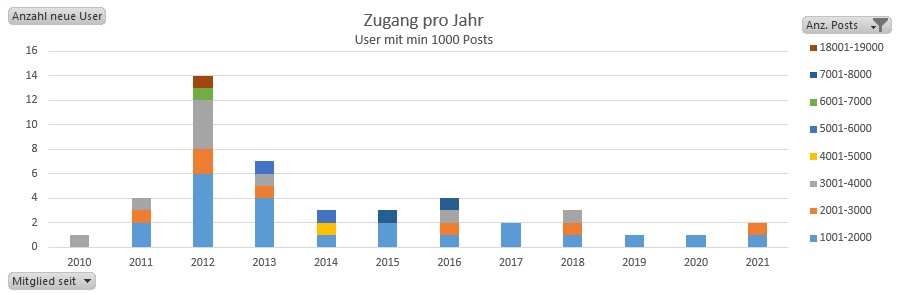 Betrachte ich den Zugang nur der User, die jeweils mehr als 1000 Posts geschrieben haben, ergibt sich folgendes Bild: