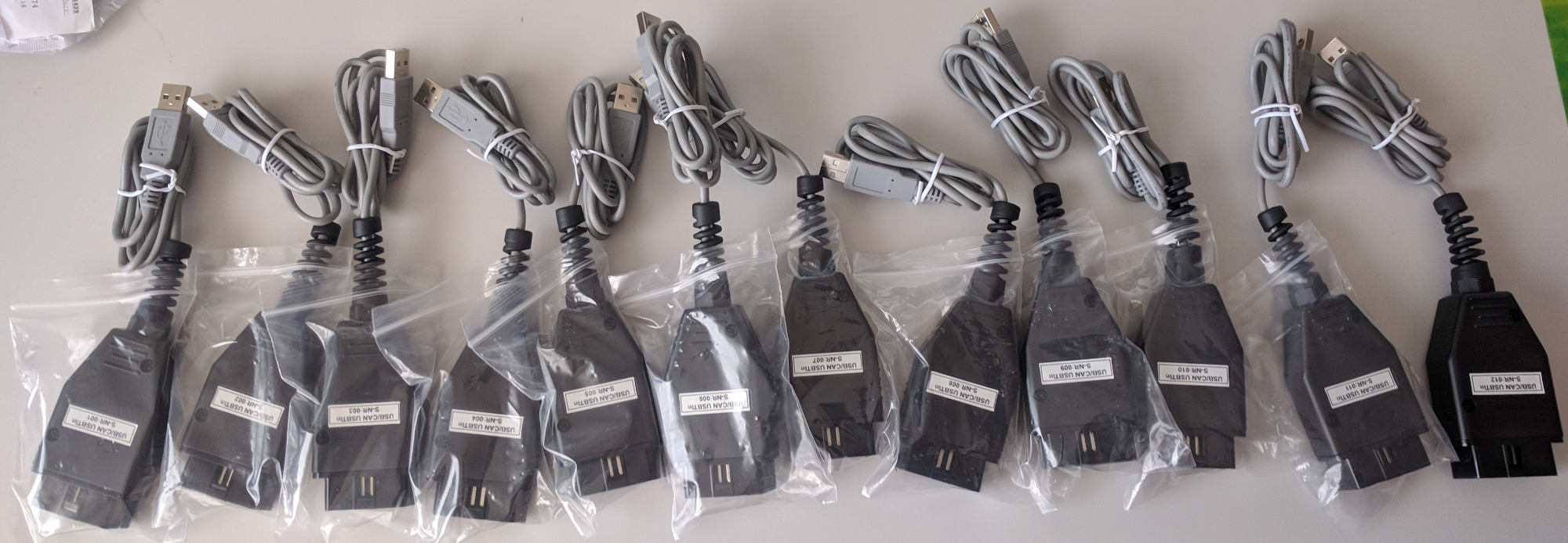 So habe dieses Wochenende knapp 30 Stunden lang 23 Stück der ODB2 Adapter gebaut. Ich kann die Dinger jetzt nicht mehr sehen