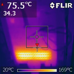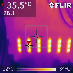 Anmerkung: Die Temperaturen haben keine Aussagekraft, da die Bilder nach unterschiedlichen Einschaltdauern aufgenommen wurden. Es ging mir nur darum zu überprüfen ob alles richtig angesteuert wird.