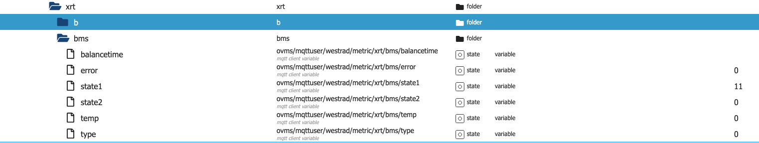 mqtt.0.ovms.mqttuser.westrad.metric.xrt.bms.state1 ist jetzt auf "5" - das Auto ist grade wieder ins WLAN gefahren ..