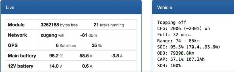 SOH: 100%Ein Blick auf die OVMS-Website um 11:17 lieferte folgendes Bild: