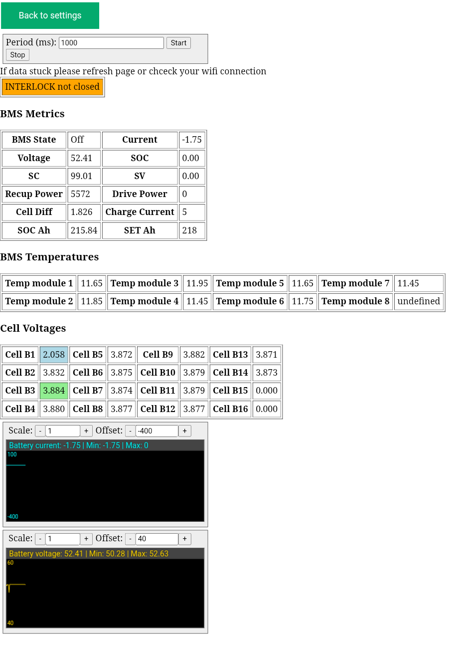 und bin da auf eine Problem gestossen, Zelle 1 zeigt im BMS UI nur 2.0 oder 2.1 V an, der Wert ändert sich bei jedem reload.