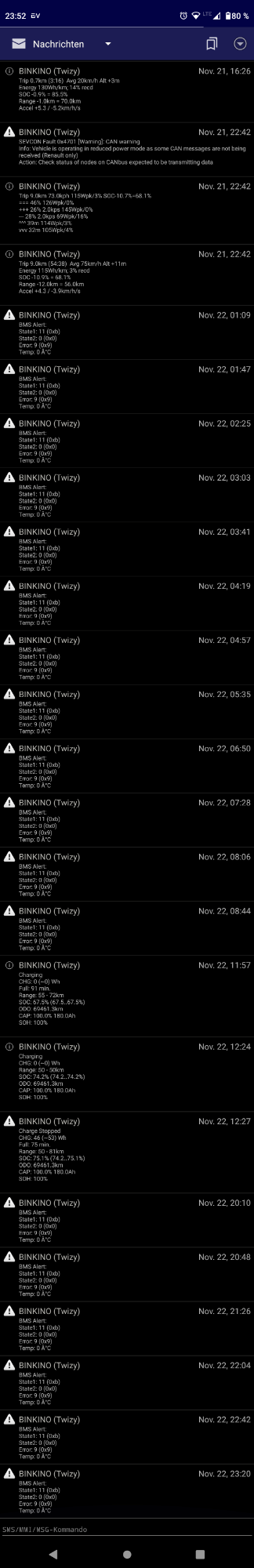 Action: Check status of nodes on CANbus expected to be transmitting dataWobei das nur Meldungen sind, die dann Zuhause im Wlan gesendet wurden. (konnten)