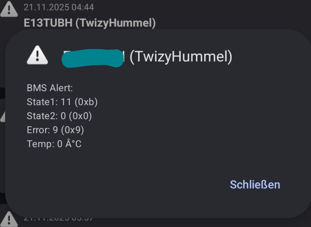 Ich teste und bestelle seit fast zwei Jahren zahlreiche Versionen von Leiterplatten, verschiedene Chips und arbeite kontinuierlich an Firmware-Verbesserungen. Erst nachdem ich meinen Twizy selbst zwei Jahre lang gefahren habe, habe ich mich entschieden, ein BMS zu verkaufen. Es handelte sich dabei nicht um ein unfertiges Entwicklungsprojekt, sondern um ein klar definiertes und abgeschlossenes Produkt. Ein BMS ist außerdem kein Display, bei dem man ständig neue Funktionen entwickeln und implementieren kann. Ich hatte nie vor, regelmäßige BMS-Updates anzubieten; in letzter Zeit habe ich lediglich kleinere Ergänzungen vorgenommen, keine größeren Änderungen. OVMS hatte ich dabei nie im Einsatz. Tut mir leid, dass ich den 0x700 Frame nicht richtig verwenden kann, vielleicht entferne ich ihn einfach in der nächsten Firmware-Version und dann bekommt niemand mehr Fehlermeldungen von OVMS