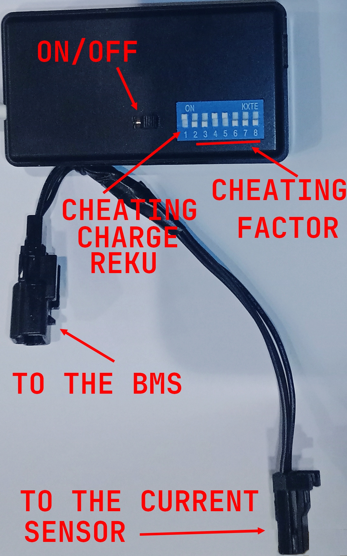 Thanks to Berthold and euver for the original idea of working on the current sensor to cheat the BMS, to Snorre for testing the very first prototype which gave uncertain results and for the enlightening insights to improve its functioning, and to Miata for lending me his 39% SOHed BMS, subjected to my extreme tests.