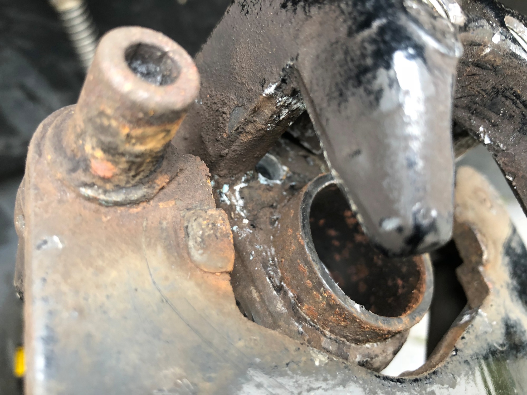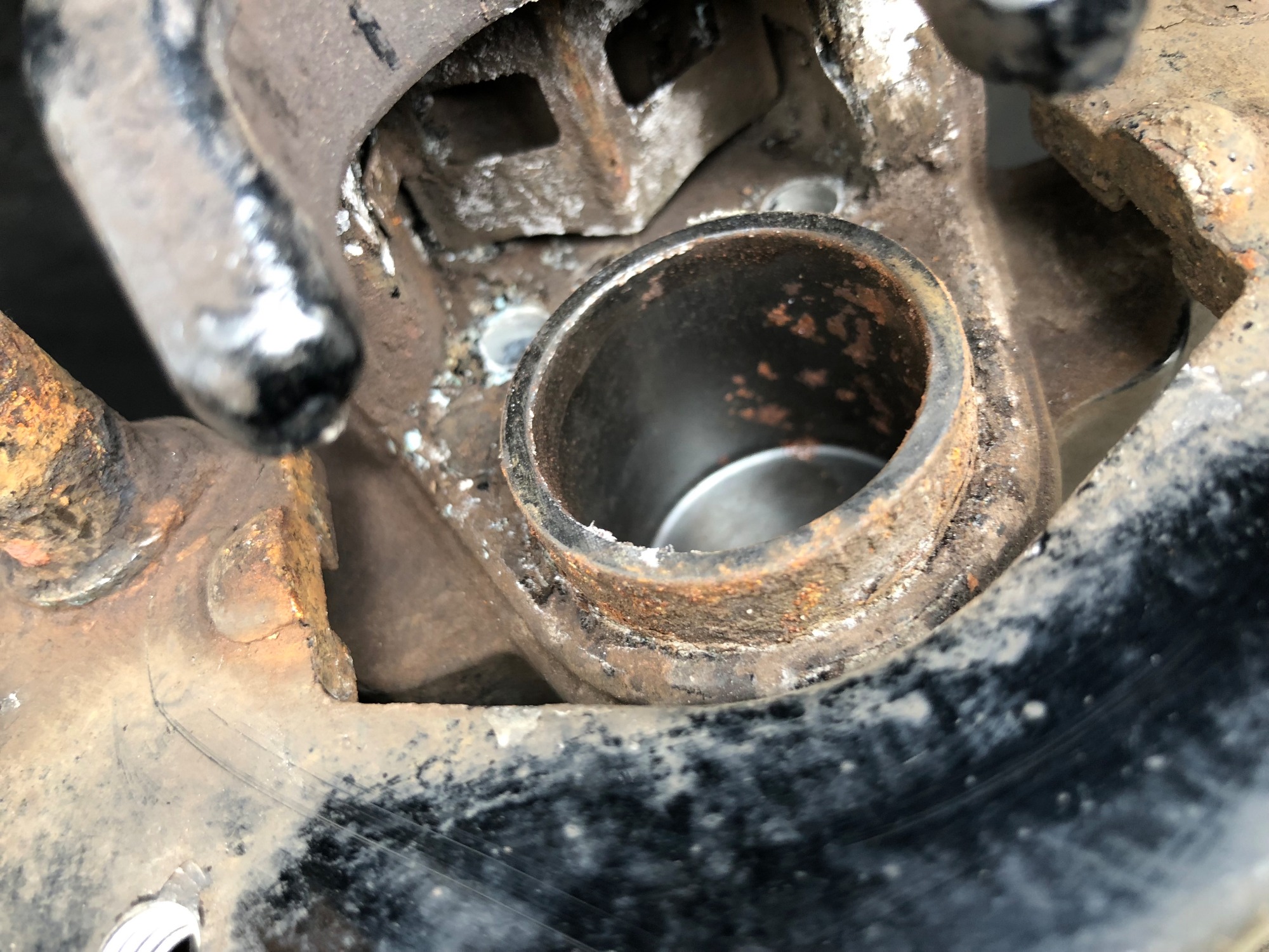 Nicht wundern, die Bremssättel habe ich im Zuge des Kolbentauschs schwarz lackiert. Und so schaut der Kolben also nach dem 2ten Winter aus: