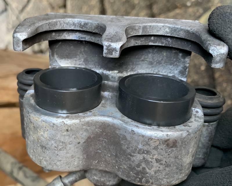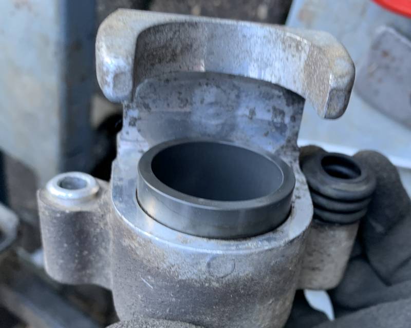 Kaum habe ich die Beläge raus und will die Kolben vor dem zurückdrücken sauber machen - was fällt mir auf?