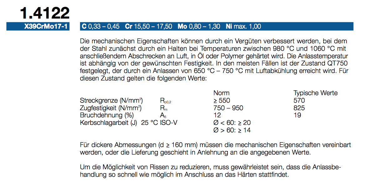 Dein Premium 1.4122 hat eine Arbeitshärte von max. 48 HRC.