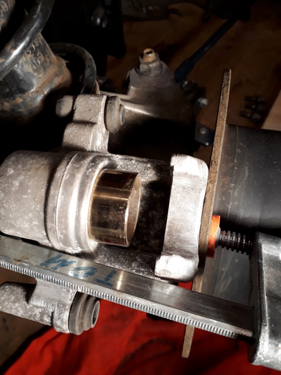 Den Kolben links vorne konnte ich nur mit extrem viel Kraftaufwand zurück drücken - das kenne ich so nicht. Und auf der anderen Seite ging er relativ leicht wieder zurück. Habt ihr eine Erklärung dafür ?