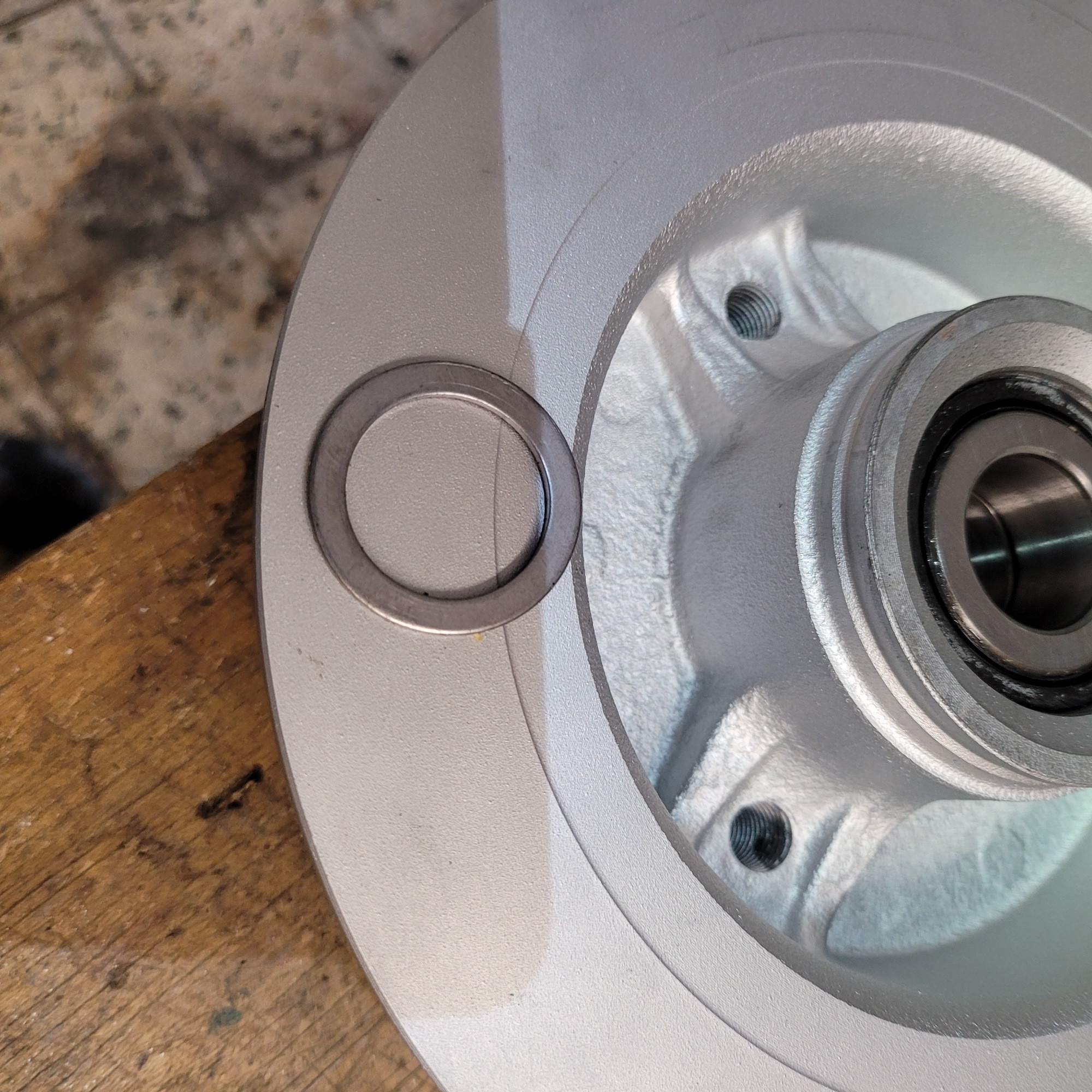 Seltsam war auch die Beilagscheibe die direkt auf der Achswelle hinter dem Radlager sitzt, aber diese wird wohl benötigt sonst sitzt die Bremsscheibe fest.