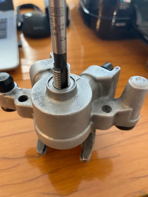 Beim Sattel Hinten passt der Gewindenbohrer M10 x 1 prima.