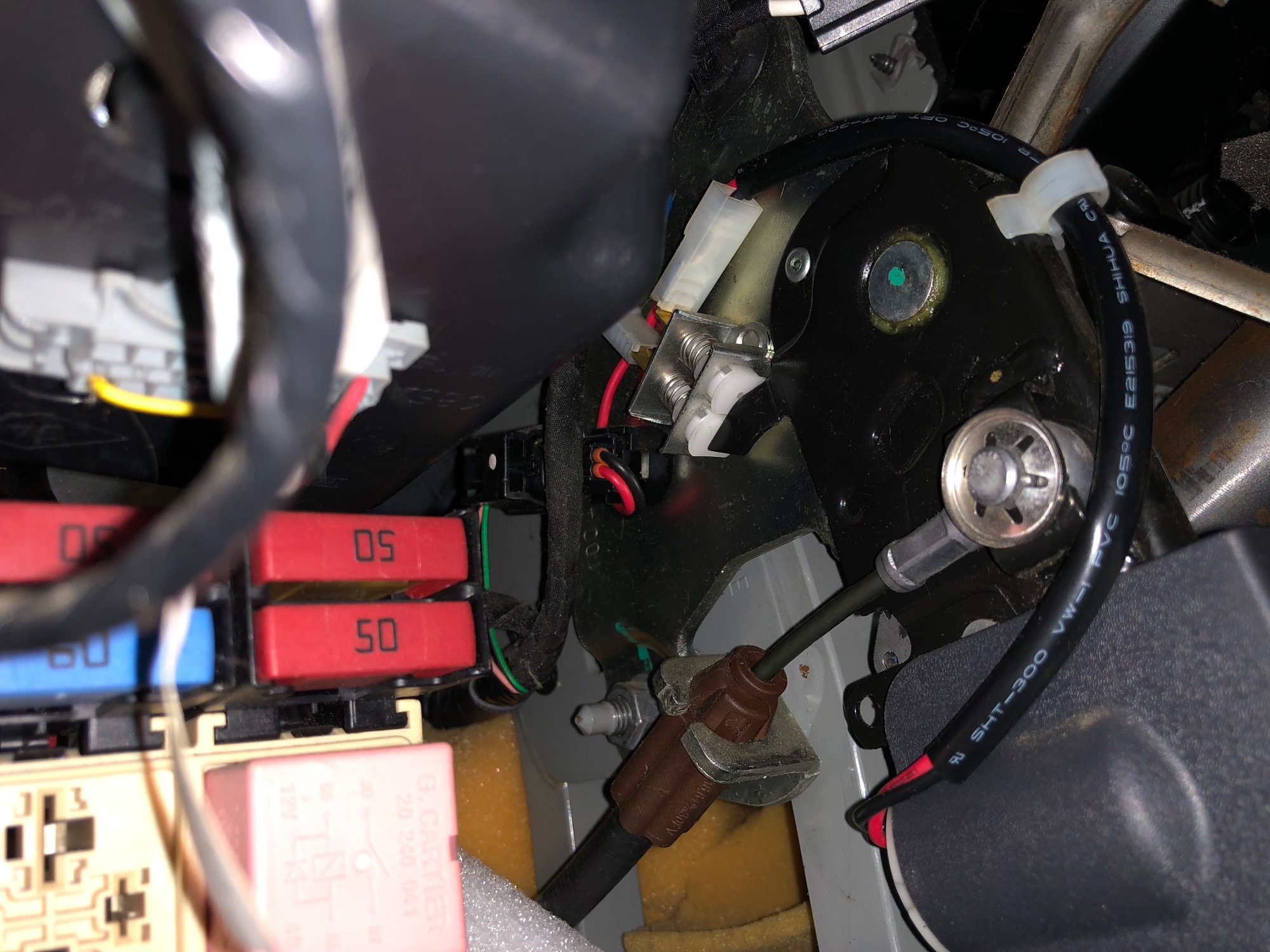 Ausbau vom Fußraum des Twizy. Ich erinnere zwei Schrauben welche die Einheit halten. Zwecks Rüttelsicherung sind die Muttern