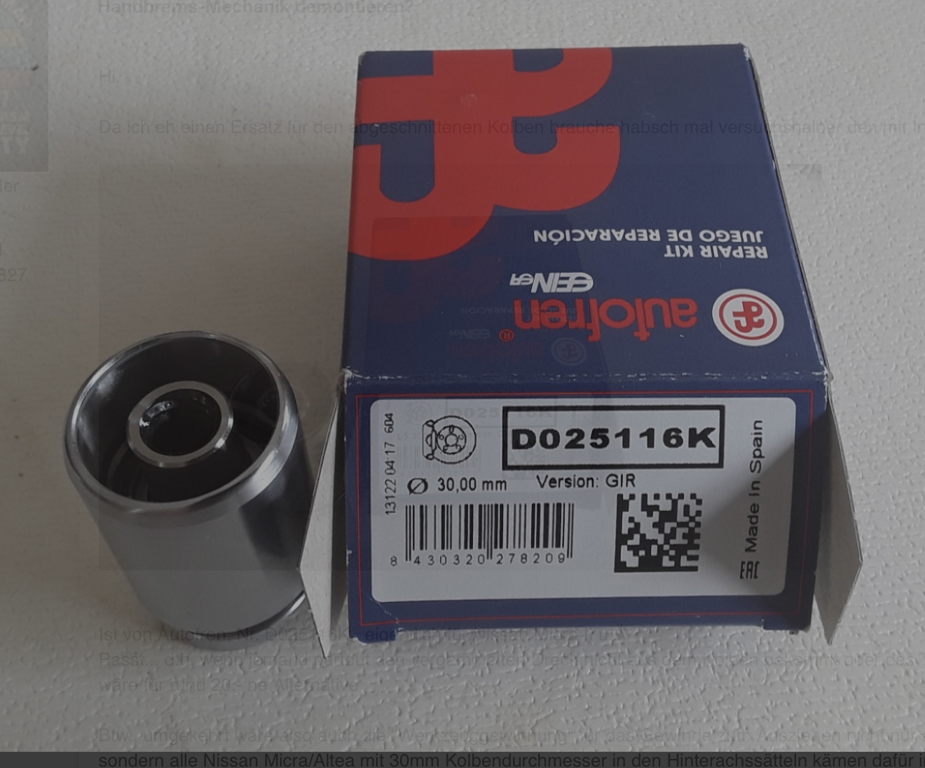 Tags zum dieses Beitrags : Bremskolben Hinten ; autofren Kolben ; Bremszange Hinterachse ; Handbremse ; Kolben Nissan ; Ersatzkolben